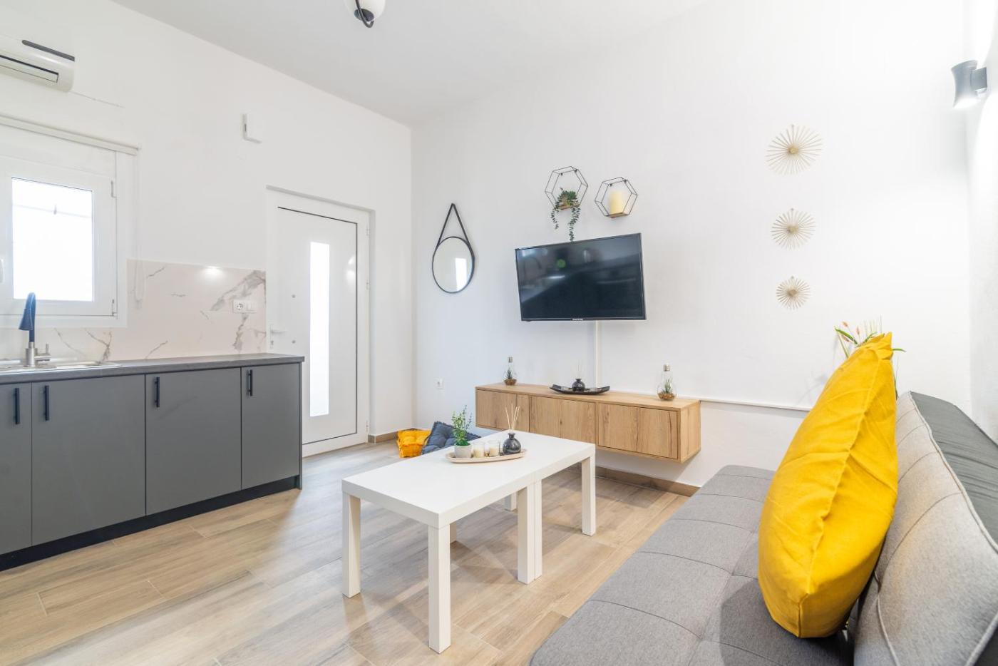 One-Bedroom Apartment. In the kitchen, guests will find a stovetop, a refrigerator, kitchenware and a tea and coffee maker. This apartment has air conditioning, a washing machine, a flat-screen TV and a terrace. The unit has 2 beds.